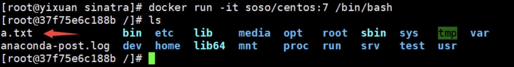 [root@docker-server1 ~]# docker run -it --name centos daocloud.io/library/centos:latest /bin/bash