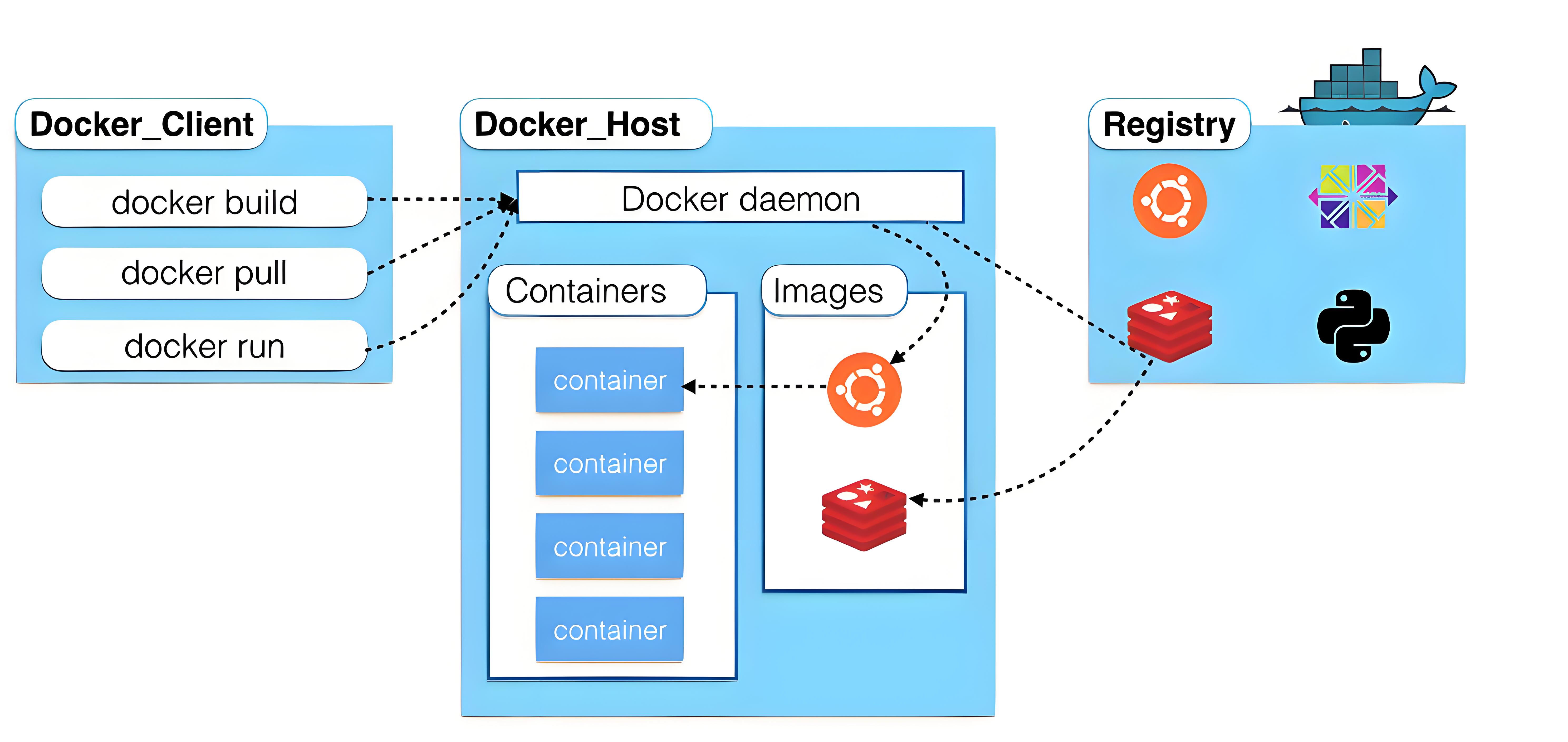 Docker系统有两个程序:Docker服务端和Docker客户端Docker服务端:是一个服务进程,管理着所有的容器。也叫docker engine。 Docker客户端:扮演着docker服务端的远程控制器,可以用来控制docker的服务端进程。 Docker服务端和客户端运行在一台机器上。